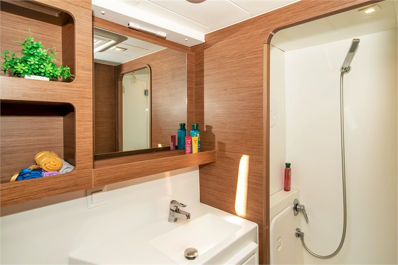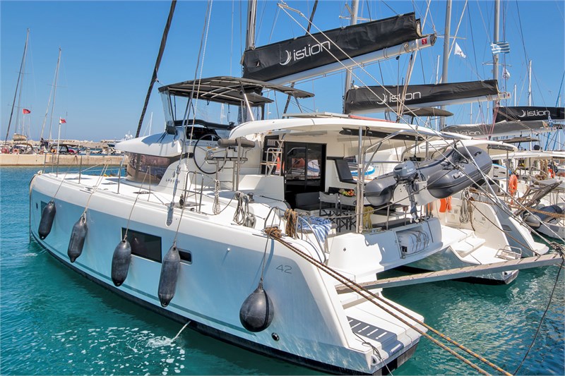 Ce confortable Lagoon 42 pourrait être le yacht idéal pour votre prochaine location de bateau. Le Voilier a tout ce qu'il vous faut pour vos vacances à la voile. Il a été construit dans l'année 2020 et est en excellent état. La longueur totale est 12,94 m. Le bateau a une distribution attractive avec 4 cabines et 8 lits au total. De plus, il y a des têtes 2. Ce merveilleux yacht de location est prêt pour vous et amarré dans Rhodes Marina dans Grèce.